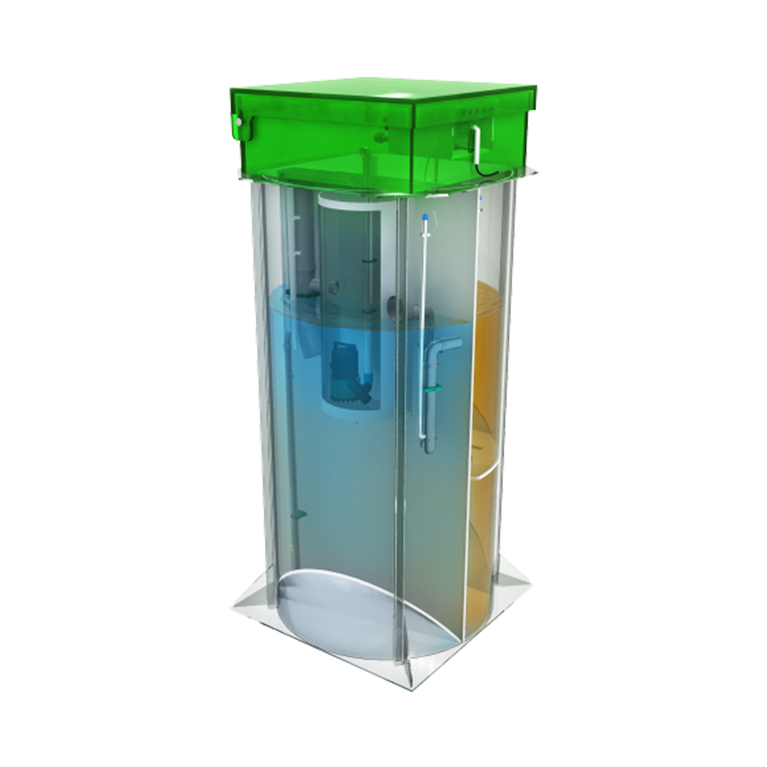 3) Глубина врезки подводящей канализационной трубы - это параметр указывает на какую глубину возможно проложить подводящий трубопровод. Во всех моделях установки Аквалос существует четыре значения глубины подводящей трубы (до 0,3 м, до 0,6м, до 0,9 м и до 1,25 м);